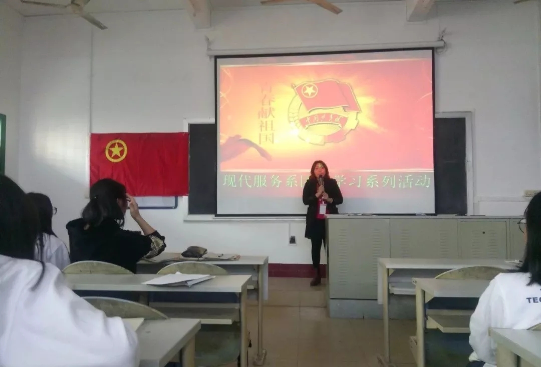 现代服务系团总支书记吕简容老师在团课活动开幕式致辞