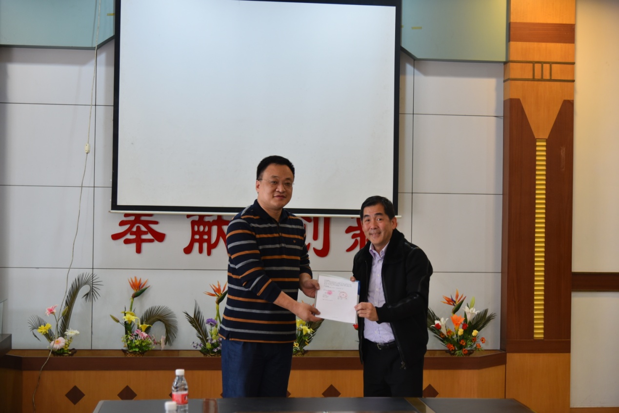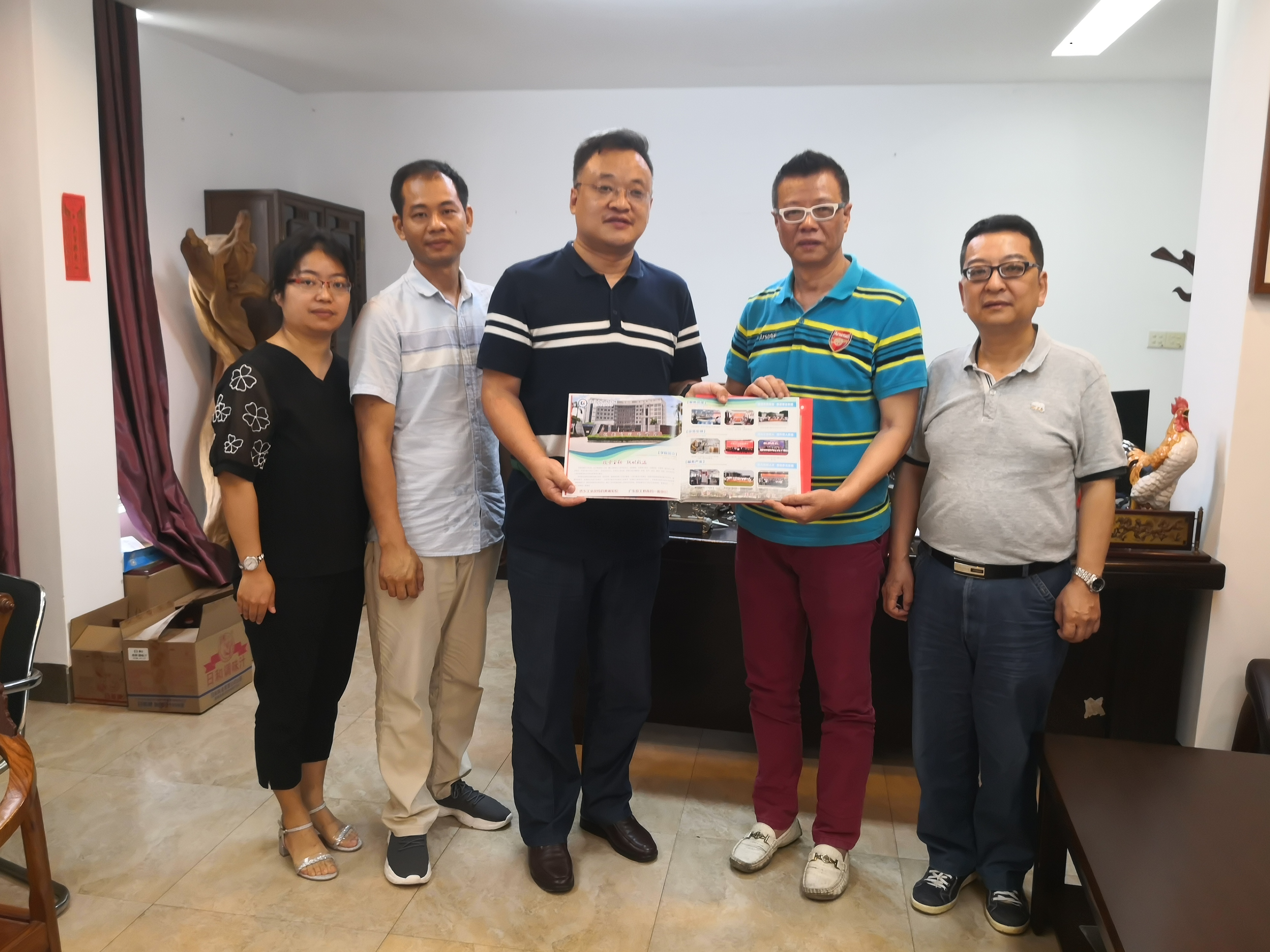 陈振宇副院长(左三)向吴秉楼会长(右二)赠送学院宣传册