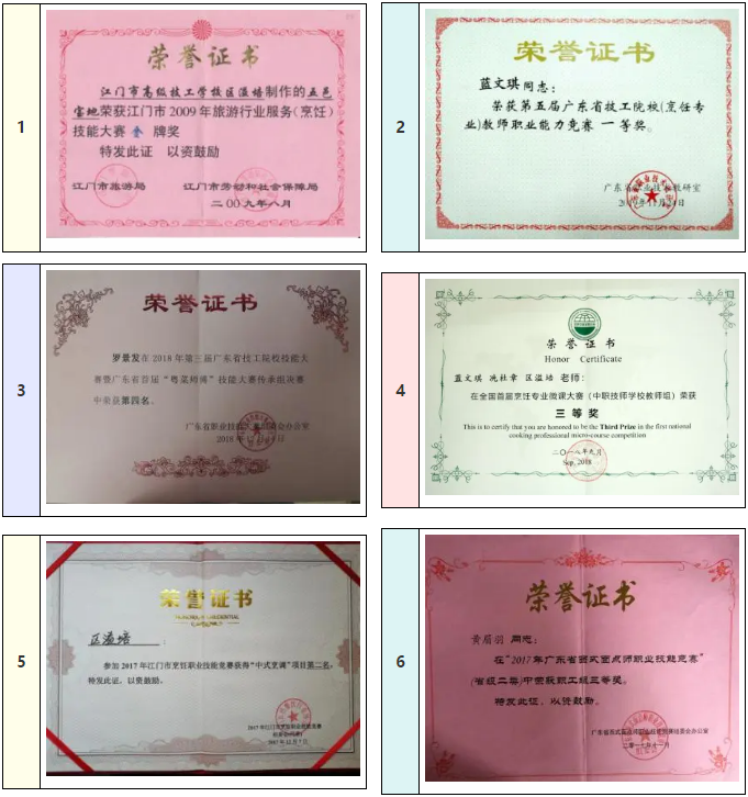 学院烹饪专业的部分荣誉和作品