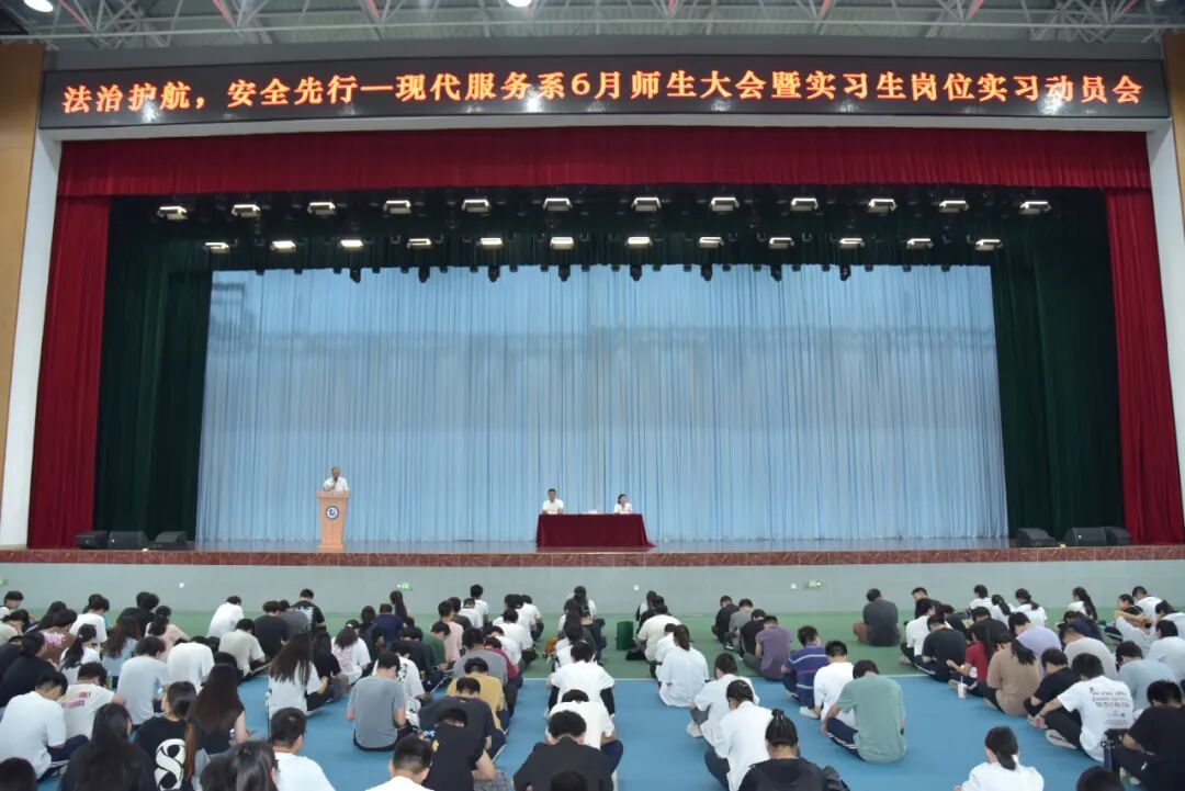 现代服务系专门举行了师生大会暨实习生岗位实习动员会。本次活动以“法治护航,安全先行”为主题,旨在增强师生法治意识,筑牢安全防线,并为即将踏上实习岗位的同学们指明方向,激励他们以饱满的热情迎接新的挑战。