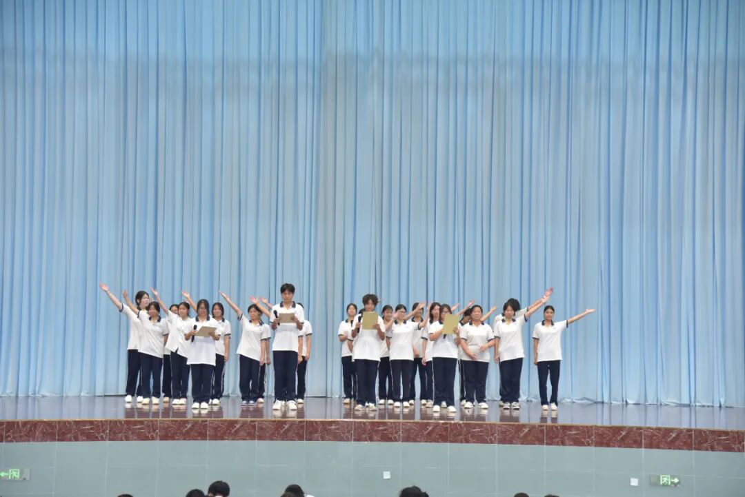 大会还穿插了丰富多彩的文艺表演。陈诗睿等3名同学带来的歌曲《记念》、张善婷同学的《晴天》、张善婷与陈颖妍等4位同学合唱的《像你这样的朋友》,以及学生会同学朗诵的《青春,奔赴远方》等节目,赢得了现场师生的阵阵掌声。这些表演不仅丰富了大会内容,更展现了同学们的才艺和积极向上的精神风貌。