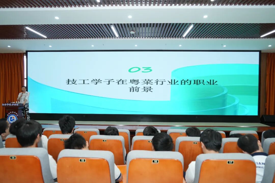 吴会长围绕着技工学子在餐饮行业的职业前景和技工学子的使命和担当与师生代表进行了深度探讨,针对现场学生的提问,做了详细的分析和回答,更加坚定了学生对粤菜传承的决心。学生纷纷表示以后要更加努力,将五邑地区的烹饪技艺和家乡的味道带到世界各地,弘扬粤菜、五邑特色菜饮食传统文化,夯实“世界名厨之乡”的基础。