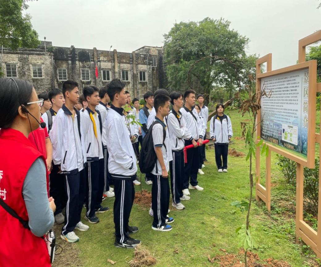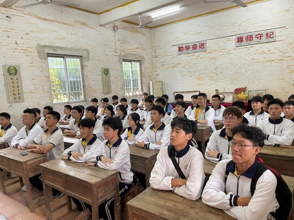 古井百年书香文化党史展览馆坐落于新会区古井镇慈溪村,该馆由民国时期创办的百年侨校——“本厚学校”改建而成。日本侵华期间,教学楼遭日军飞机轰炸,导致墙体、楼板坍塌。直到抗日战争胜利后,海外乡亲又捐资重建,如今被打造成党校分教点、青少年学习教育基地、青少年研学基地等。同学们通过上团课、唱团歌、参观体验党史长廊等探寻方式,全面了解中国共产党从诞生至今走过的艰难历程以及取得的伟大历史成就,深刻感受到革命先辈们为祖国抛头颅、洒热血的伟大爱国情怀。