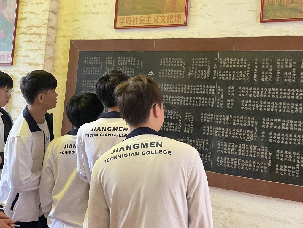 为铭记革命历史,探寻革命足迹,激发学生感悟红色精神,先进制造系党支部、团总支积极开展红色主题研学活动,组织师生参观新会区古井百年书香文化村党史展览馆。