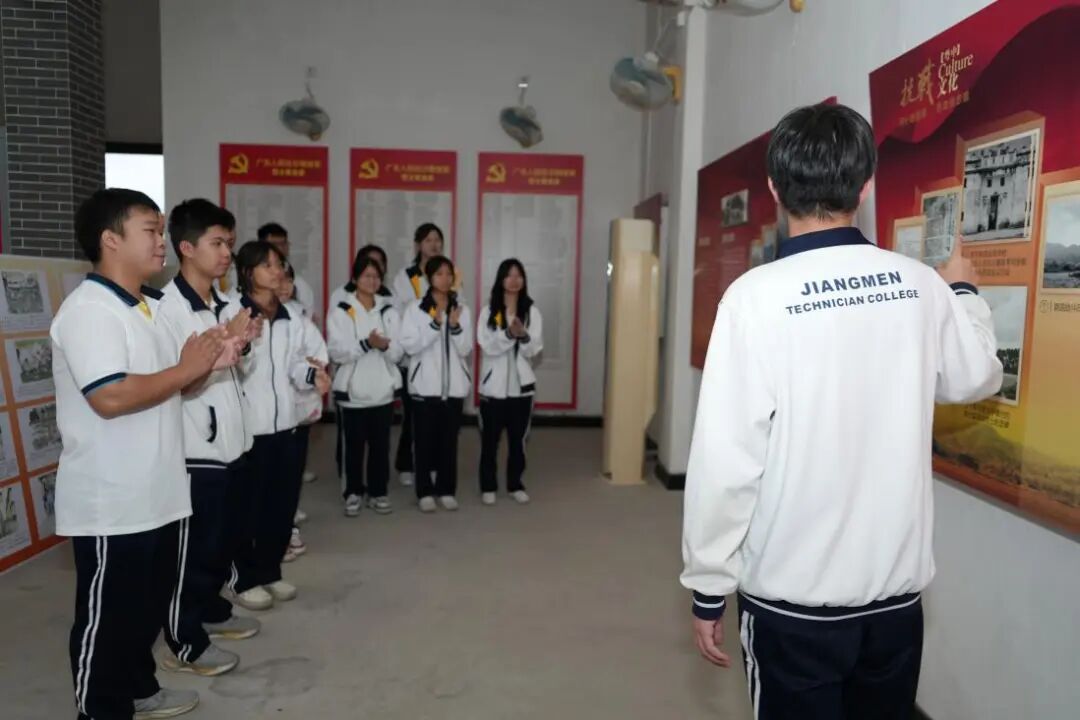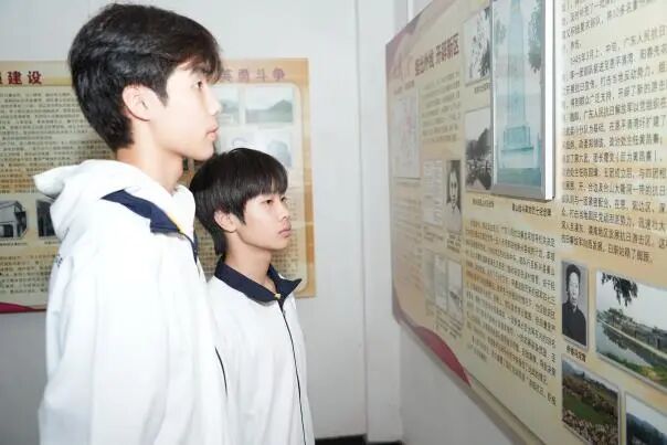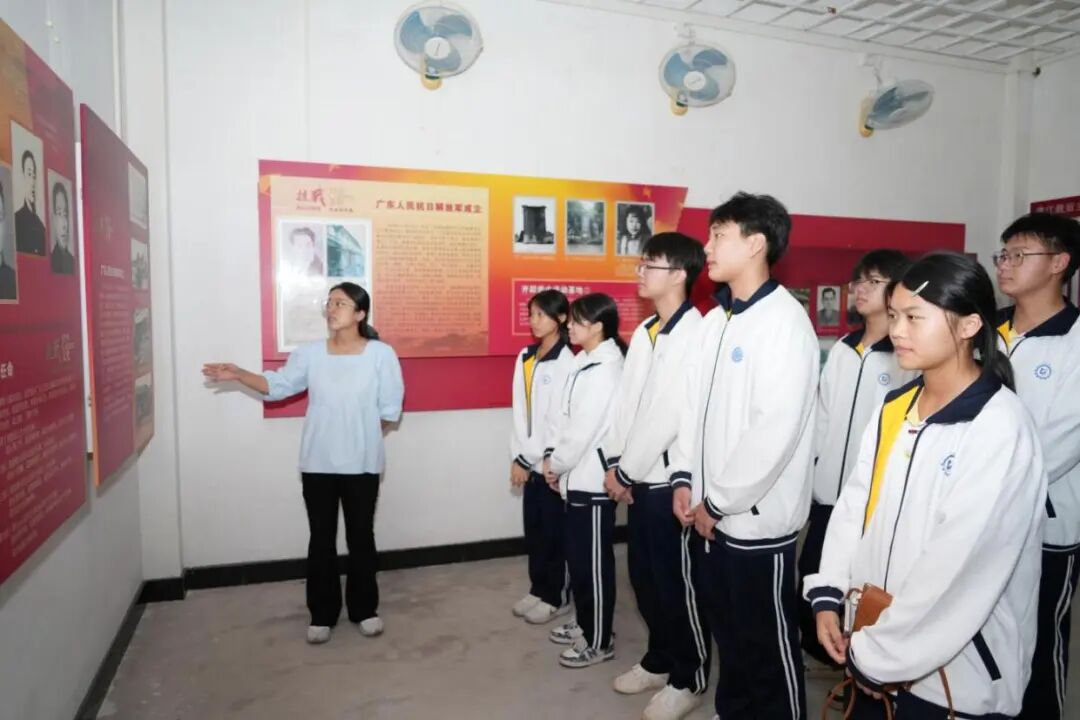 当日下午,学生们身着统一校服,团员佩戴团徽,怀着崇敬之心有序抵达旧址。在带队老师的细致讲解下,大家认真聆听抗战先辈浴血奋战、保家卫国的峥嵘岁月,深刻感悟革命先辈为民族独立、人民解放挺身而出的家国情怀与斗争精神。随后,师生们逐一参观场馆内的历史文物、文献资料和复原场景,泛黄的照片、珍贵的实物、生动的事迹,让大家仿佛穿越到烽火连天的抗战年代,真切体会到华南地区抗战历史的厚重与艰辛。