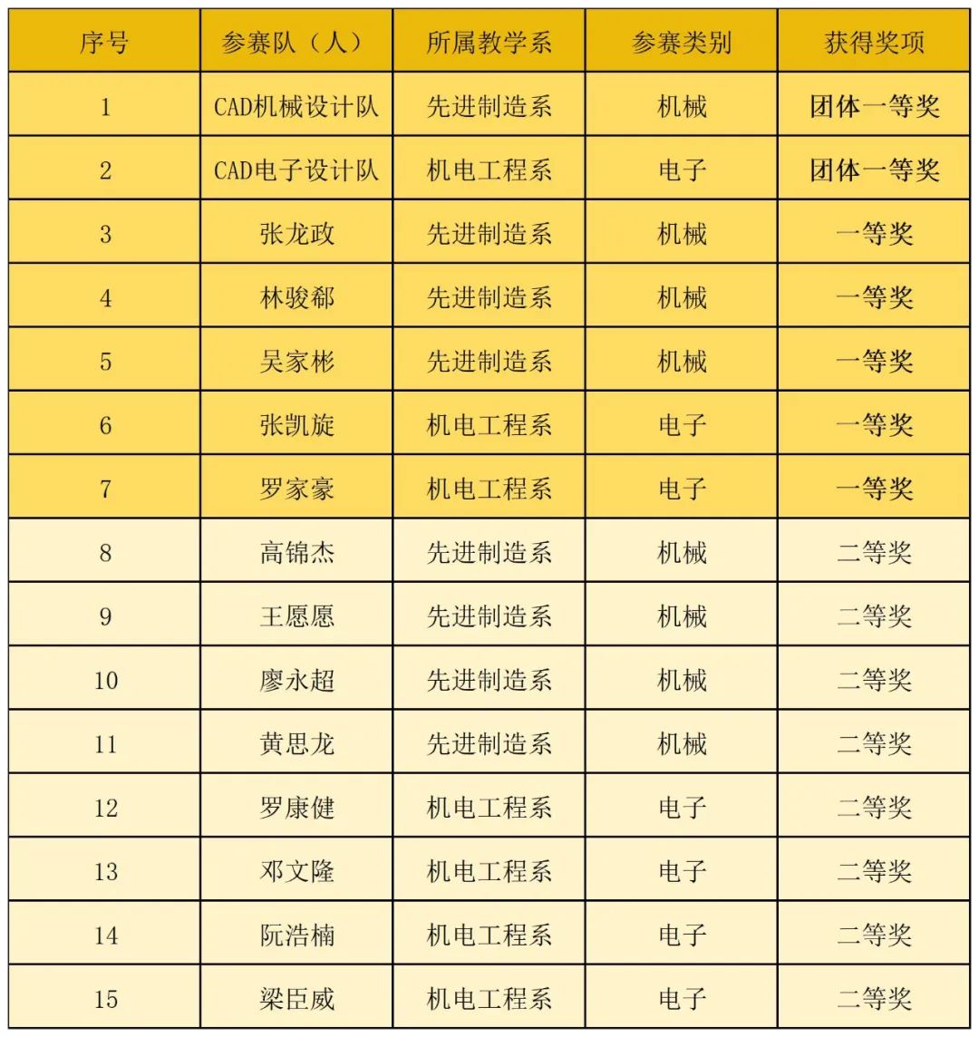 近日,第十八届“高教杯”全国大学生先进成图技术与产品信息建模创新大赛总决赛公布结果。经校赛、省赛层层选拔,我院最终派出的 CAD 机械设计竞赛队和 CAD 电子设计竞赛队表现出众,两支队伍均荣获团体一等奖,队员们也分别斩获个人一二等奖。