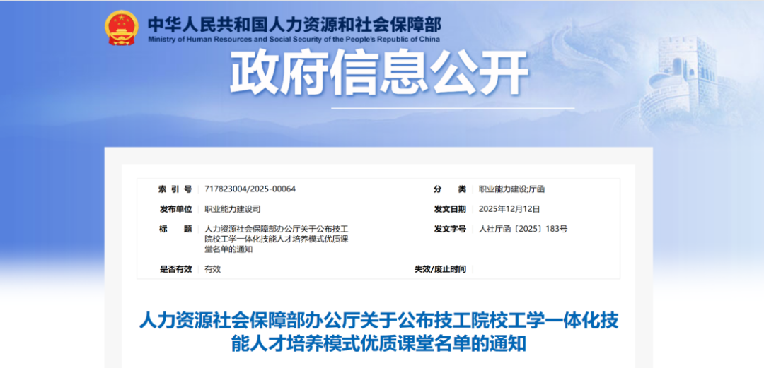 此次优质课堂遴选工作,依次经历院校申报、省级遴选、人社部统筹等多轮严谨评审,相关课堂在全国范围内的激烈竞争中脱颖而出,成功跻身369个国家级优质课堂之列(全国统一编号:43)。这一成果是学院系统推进“产训结合,工学一体”工学一体化技能人才培养模式与专业内涵建设进程中的标志性成效。