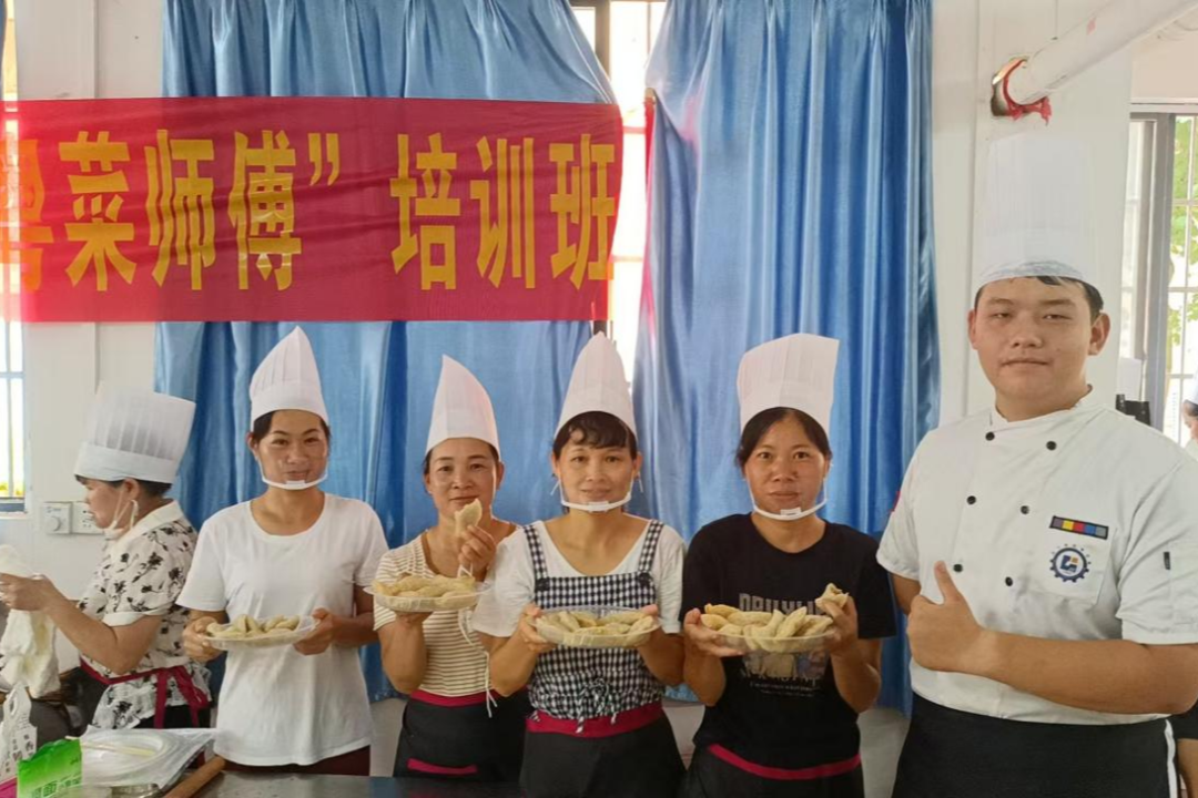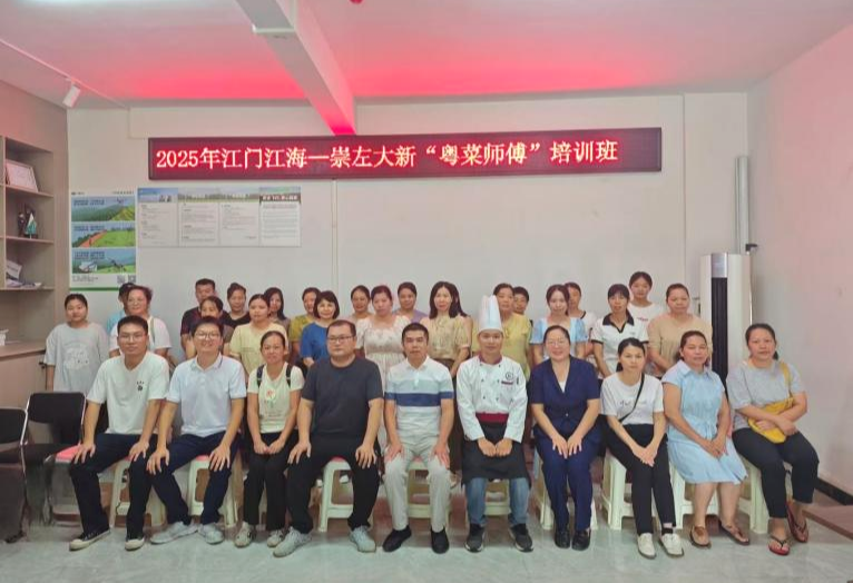 为深入贯彻落实粤桂协作战略部署,深化江门-崇左对口帮扶工作,在江门市人力资源和社会保障局统筹下,学院“粤菜师傅”培训教学团队,于2025年8月4日至13日期间参加“2025年江门-崇左技能帮扶培训”工作,先后在崇左市大新县、龙州县举办的“粤菜师傅”技能培训班,培训当地劳动者64名。