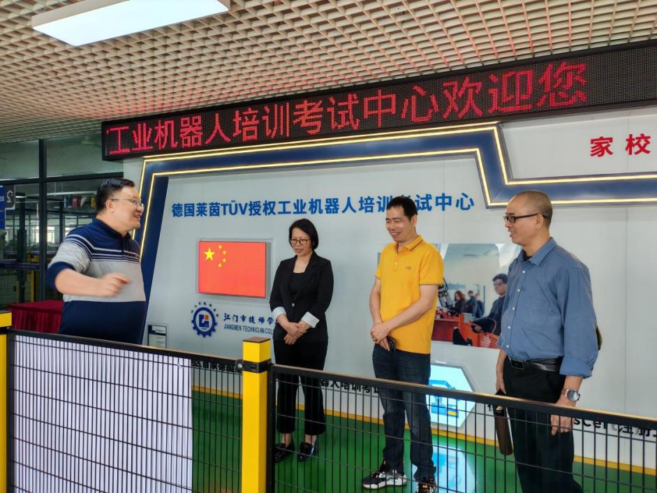 湛江市技师学院一行参观调研了潮连校区数控车、数控铣实训基地,马琰谋、吴恩来国家级大师工作室、德国莱茵TÜV焊接培训考试中心、工业机器人培训考试中心等。实地调研学院服务地方先进制造业、现代服务业等重点产业发展情况,详细了解学院对接市场需求和职业技能等级评价要求,实施专业建设、技能人才培训、评价认证等工作。同时,希望双方在产教评技能生态链建设、一试双证、“南粤家政”培训等方面持续交流合作,共同推进高素质技术技能人才培养。