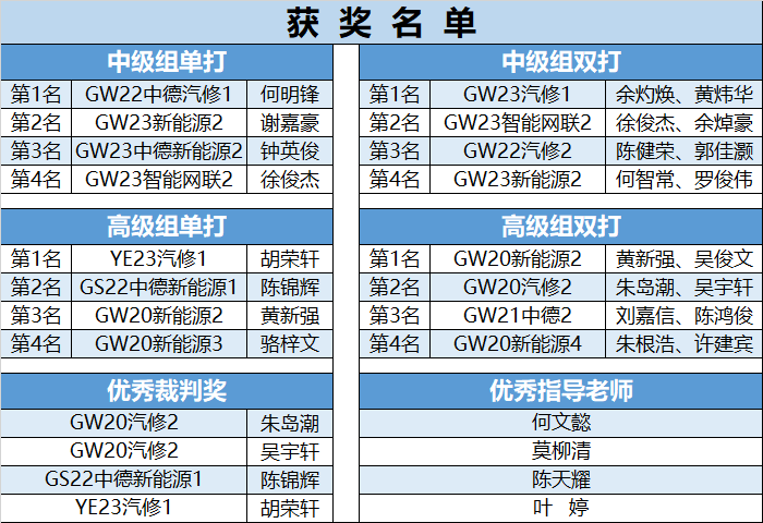 在闭幕式上,首先进行的是学生的精彩舞狮表演和舞蹈表演,为活动增添色彩和气氛。接着颁发了各个奖项,包括中高级组单打、双打的前四名、优秀裁判、优秀指导老师等。汽车工程系党支部书记、主任禹德伟对本次比赛进行了点评。他指出,本次比赛活动培养了同学们的团结协作精神、公平竞争意识和顽强拼搏的毅力,这些都是新时代工匠必备的品质,希望同学们将比赛中的拼搏精神转化为学习动力,不断提升自己的专业技能和综合素质。