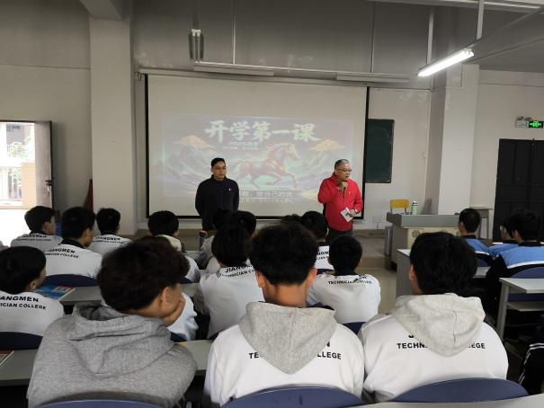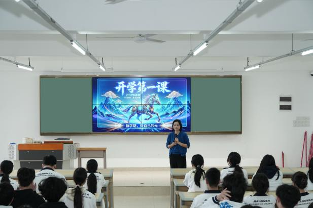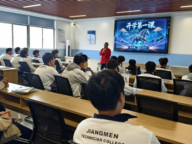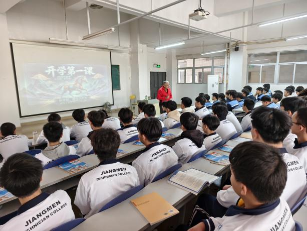 春启新程,万象更新;龙马精神,奋楫争先。伴着春日的暖阳,江门市技师学院全体学子重返校园,开启2026年春季学期的崭新篇章。为引导学子立鸿鹄之志、树奋斗之心、践笃行之举,全院以“马年奔腾,策马扬鞭,新学期,做自己的光”为主题开展开学第一课,各教学系管理干部带头主讲,为全体学生送上一堂兼具思想深度、温度与专业契合度的开学思政课,在欢声笑语的开学氛围中,为学子们的新学期成长指明方向、注入力量。