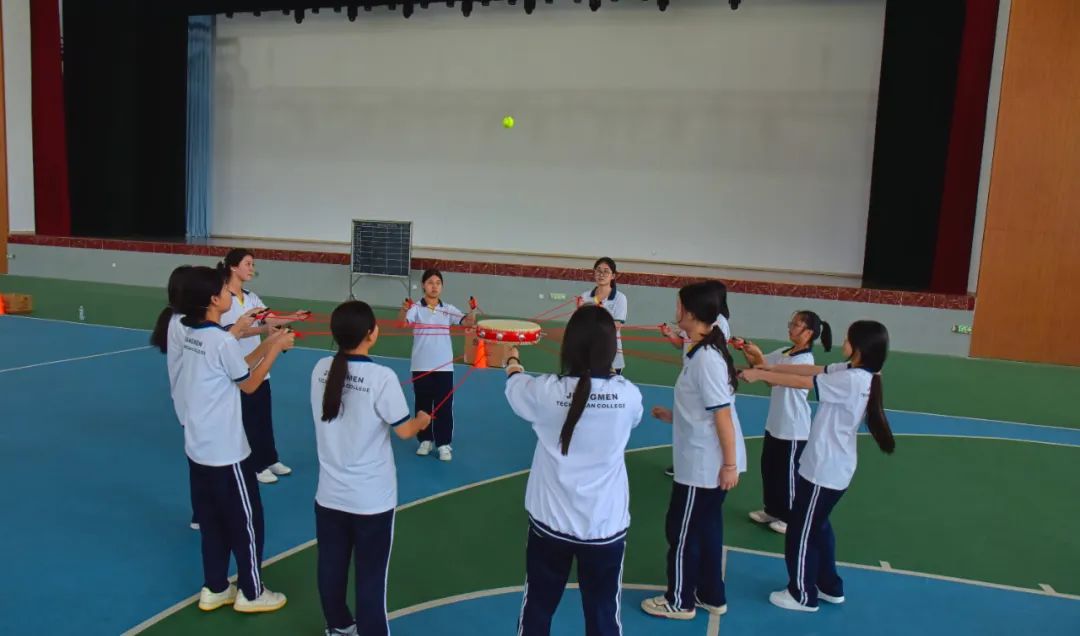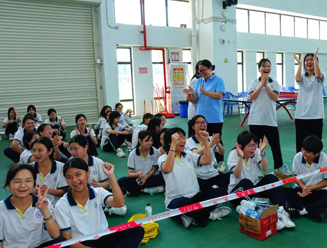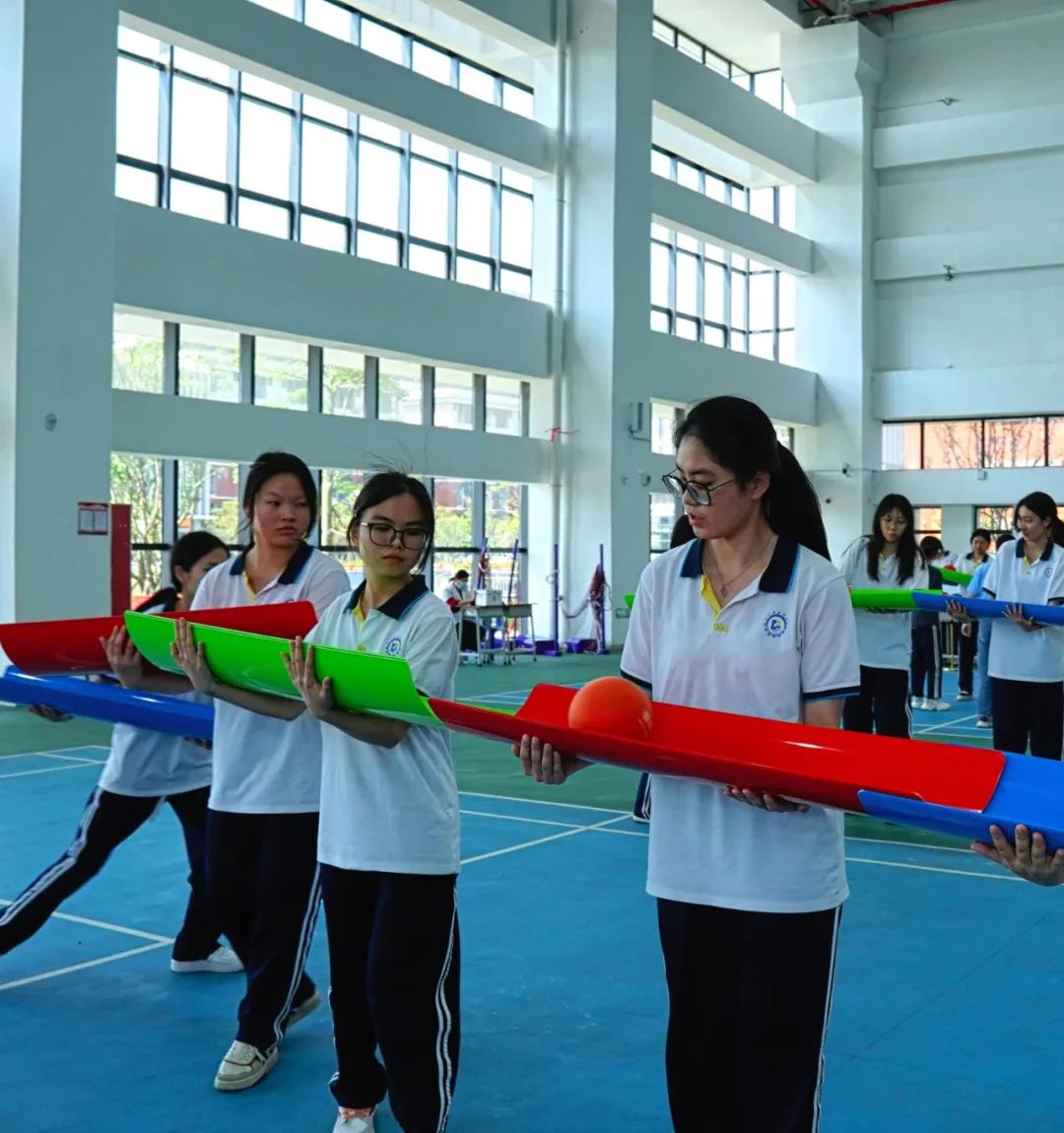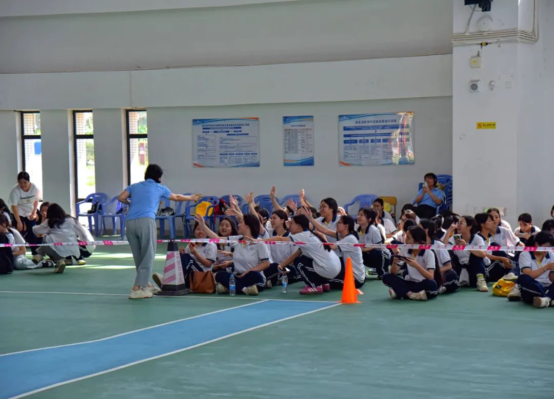 活动伊始,全体师生共同参与热身运动和趣味问答,现场气氛迅速升温。此次运动会包含“珠行万里”和“同心共鸣鼓”两个比赛项目,分别考验了参赛队伍的专注力与团队协作能力。女生们踊跃参与,现场洋溢着热烈的氛围。赛场上,她们斗志昂扬,生动诠释了永不言弃的体育精神;她们相互鼓励,携手并进,为了集体的荣誉奋力拼搏。体育馆内加油声、欢呼声此起彼伏,将运动会推向一个又一个高潮。