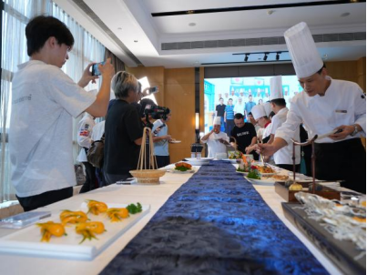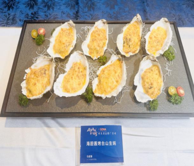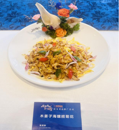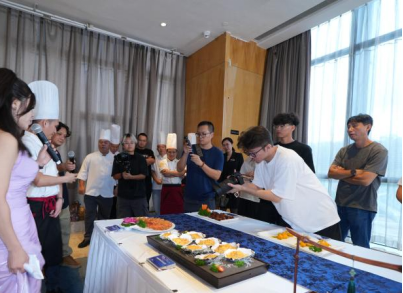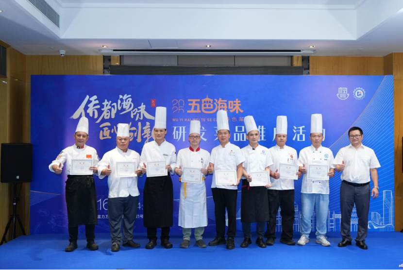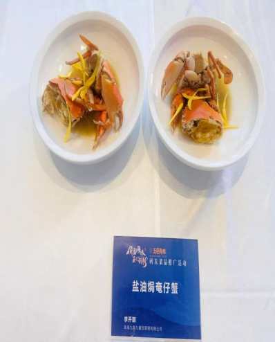 在菜品展示环节,“邑味黄金虾”、“海胆酱烤台山生蚝”、“花胶独蒜烧鳗鱼”、“蒜香沙虫蒸沙河粉”、“蟹韵团圆酥”、“黑松香煎海鲈球”、“盐油焗奄仔蟹”、“木姜子海螺捞菊花”8道融合传统五邑海味与现代烹饪理念的新品轮番登场,鲜、香、酥、嫩层层叠味,现场嘉宾直呼“食过返寻味”。
