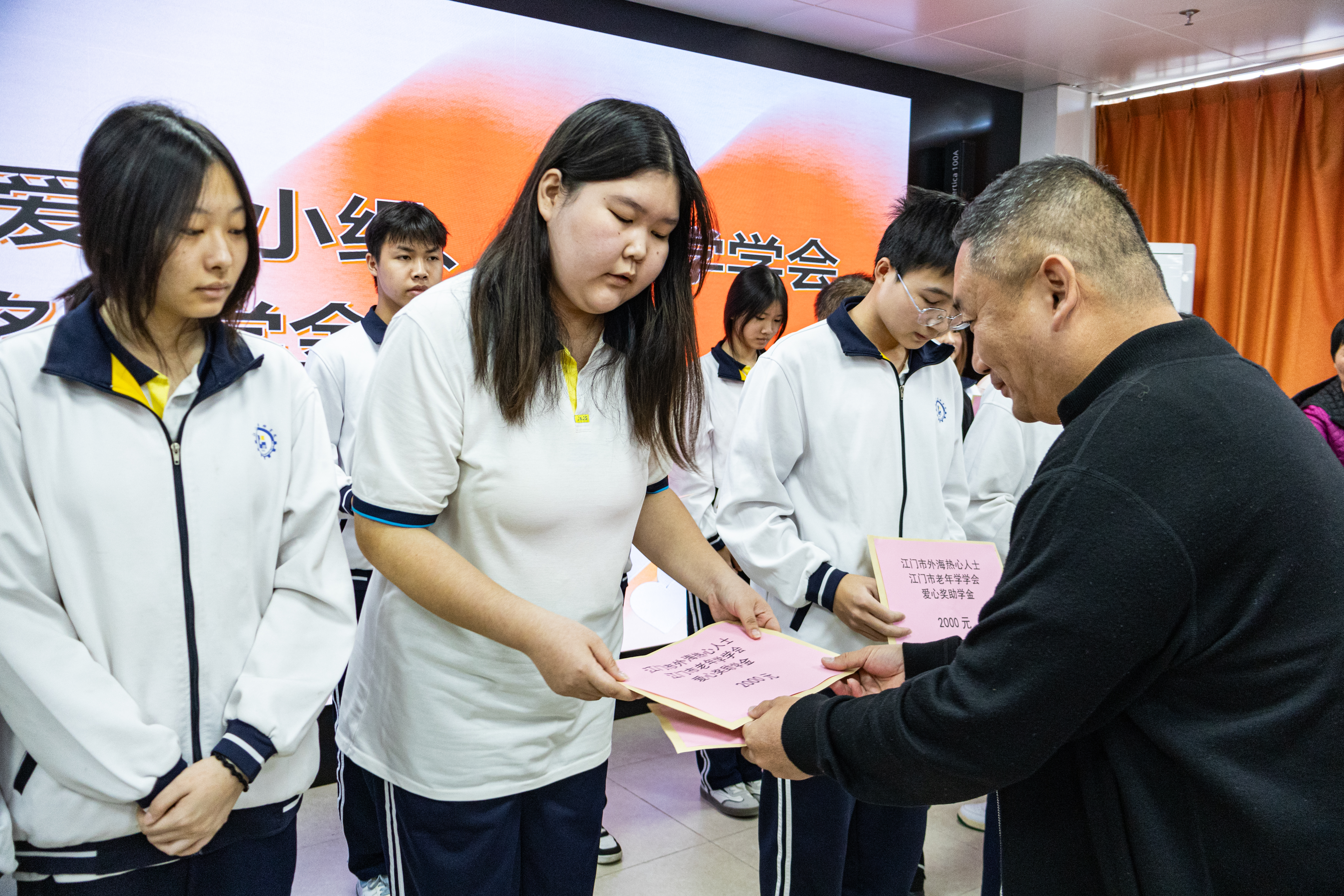 为持续深化“关爱学生”工作走深走实,凝聚社会各界关爱力量,助力青年学子成长成才,近日,江门市技师学院与江门市外海爱心小组、市老年学学会联合举行2025年度奖助学金发放仪式。活动现场暖意融融,17名品学兼优、家庭困难的学子获得爱心奖助学金,本次共计发放资助资金3.4万元,为学子们的求学之路纾困解难、增添奋进动力。