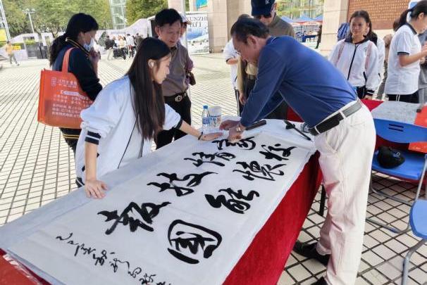 活动现场,学院的志愿者们分工协作、热情投入,成为一道亮眼的“青春风景线”。舞台之上,学生主持人以沉稳台风、流畅表达串联活动环节,展现过硬的语言与应变能力,为活动的顺利进行增添光彩;无人机展示区域里,学生志愿者们检查设备线路、调试飞行参数,积极与参观者互动,解答疑问,引导大家亲身体验科技的魅力;农产品展区里,志愿者主动研学产品特色,协助商家整理展品、推介产地优势,助力军创企业农产品打开销路;书画艺术区里,学生志愿者们引导参观人流有序驻足,协助为参会者封装心仪的作品;金融专区中,志愿者配合开展贷款政策宣讲、假币鉴别科普,以严谨态度保障服务高效有序。