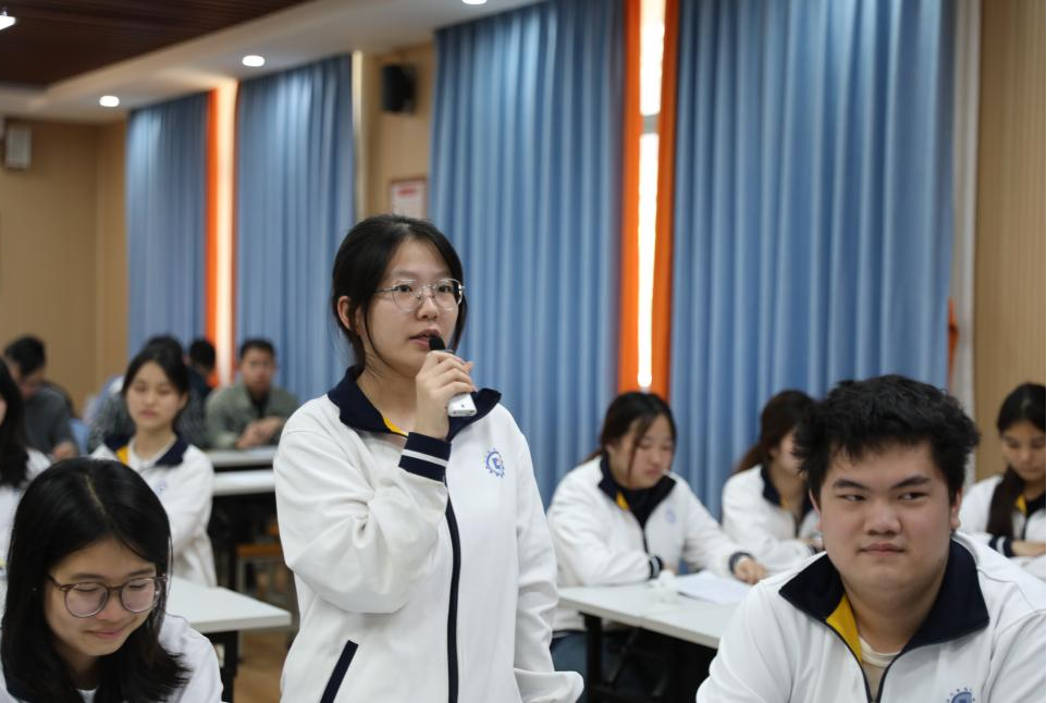 随后,财务经管系主任唐薇薇、学生部老师叶风华、信息技术系覃能杰老师、现代服务系蔡桥峰老师作了点评发言。他们指出,本次班会课注重学生主体地位,以“AI+职业成长”为核心,将思政教育、专业认知与技术实践深度融合,环节设计层层递进,既激发学生职业梦想,又引导其理性看待AI对就业的影响,同时结合会计专业特色,将 AI技术与财务岗位需求紧密结合,让学生在体验中感知“会计+AI”的发展方向。教师总结时精准提炼“AI是工具而非替代者”的核心观点,对提升学生职业竞争力具有切实指导意义。