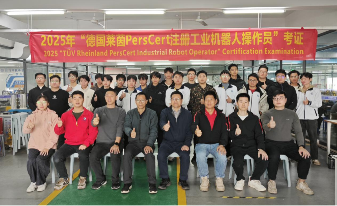 近日,德国莱茵TÜV在我院德国莱茵TÜV工业机器人培训考试中心组织举办德国莱茵TÜVPersCert注册工业机器人操作员认证,23名学员凭借扎实的专业技能和出色的发挥,全部通过认证,获证率达100%!