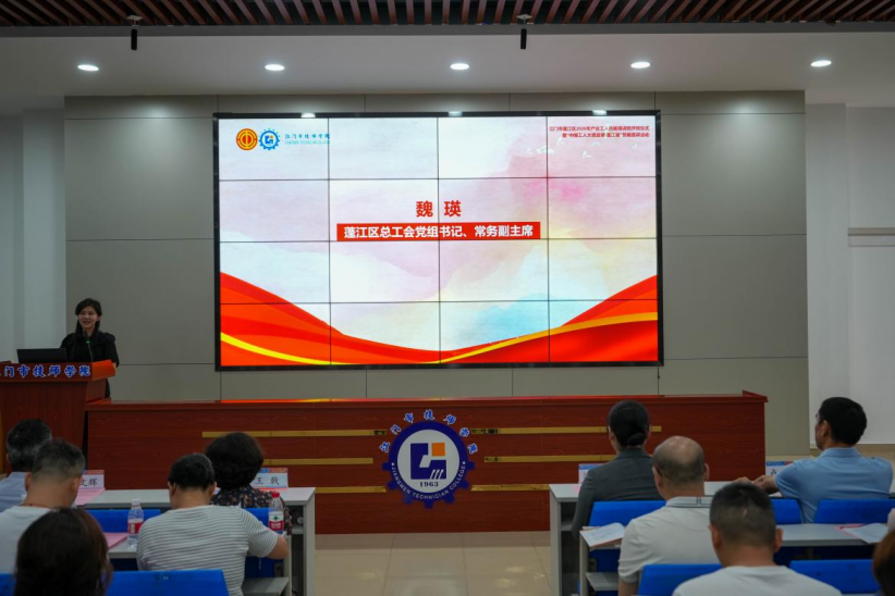 蓬江区总工会党组书记、常务副主席魏瑛在讲话中强调,产业工人是“制造业当家”的重要力量。她勉励全体学员珍惜学习机遇,以饱满热情投入培训,把所学技能运用到实际岗位中,努力成长为新时期产业工人的“新工匠”。