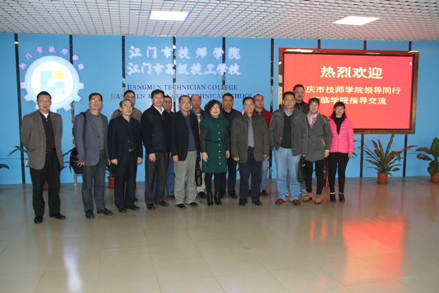 3月10日下午,肇庆市技师学院院长、党委书记刘兆忠、副院长梁汉昌、彭建新、高志凯、党委副书记李颂等校领导及多个科室主要负责人一行14人来我院参观调研,受到学院负责人王戟副院长、院长助理陈振宇等领导的热烈欢迎,双方就校区(两个以上)管理办法及经验进行了深入的交流。