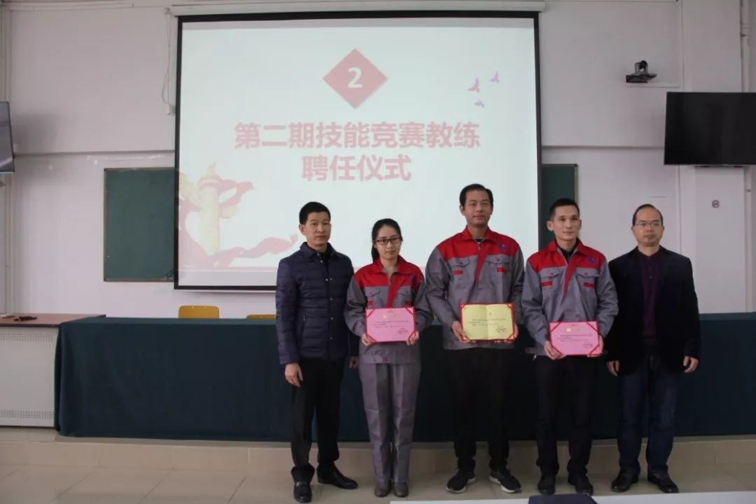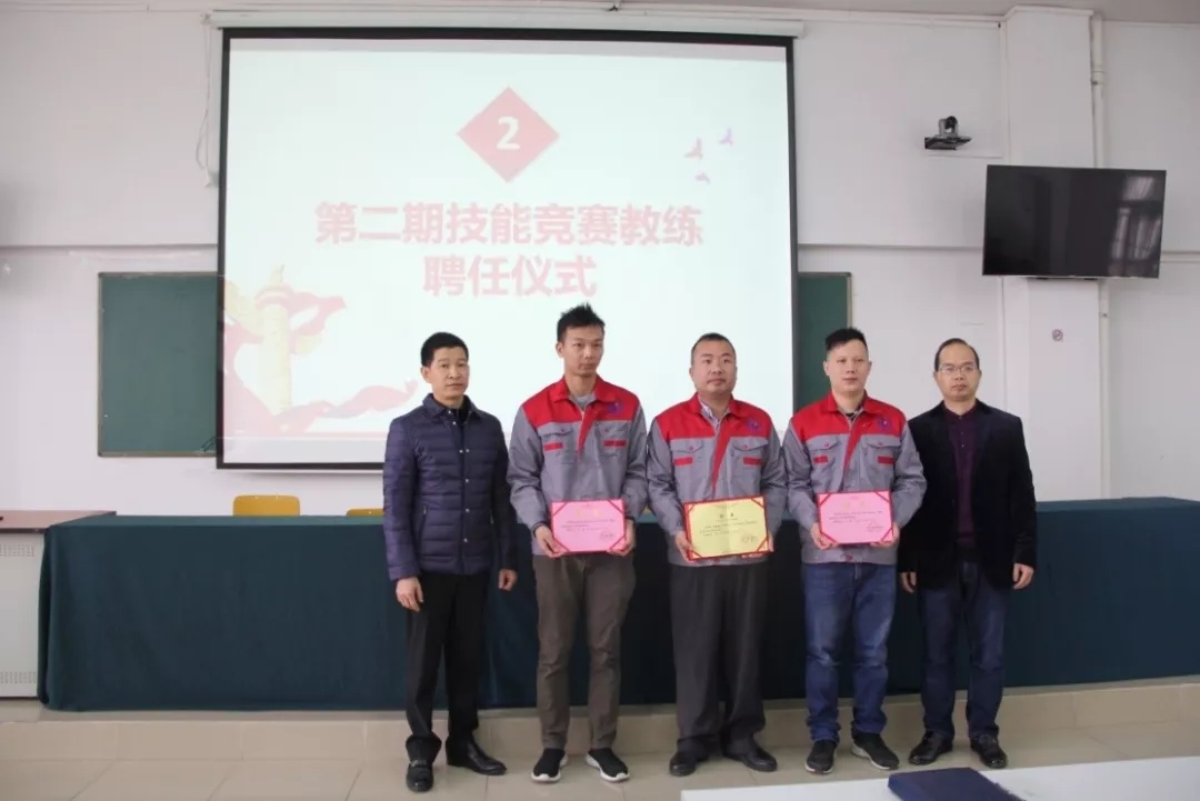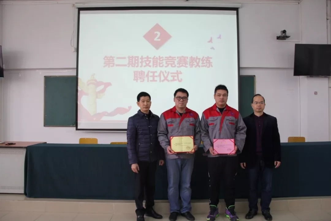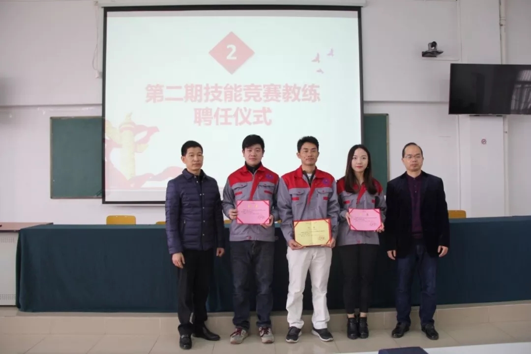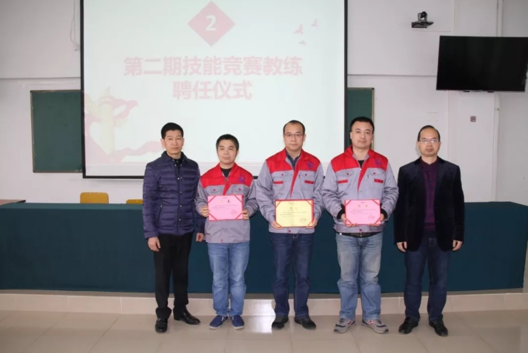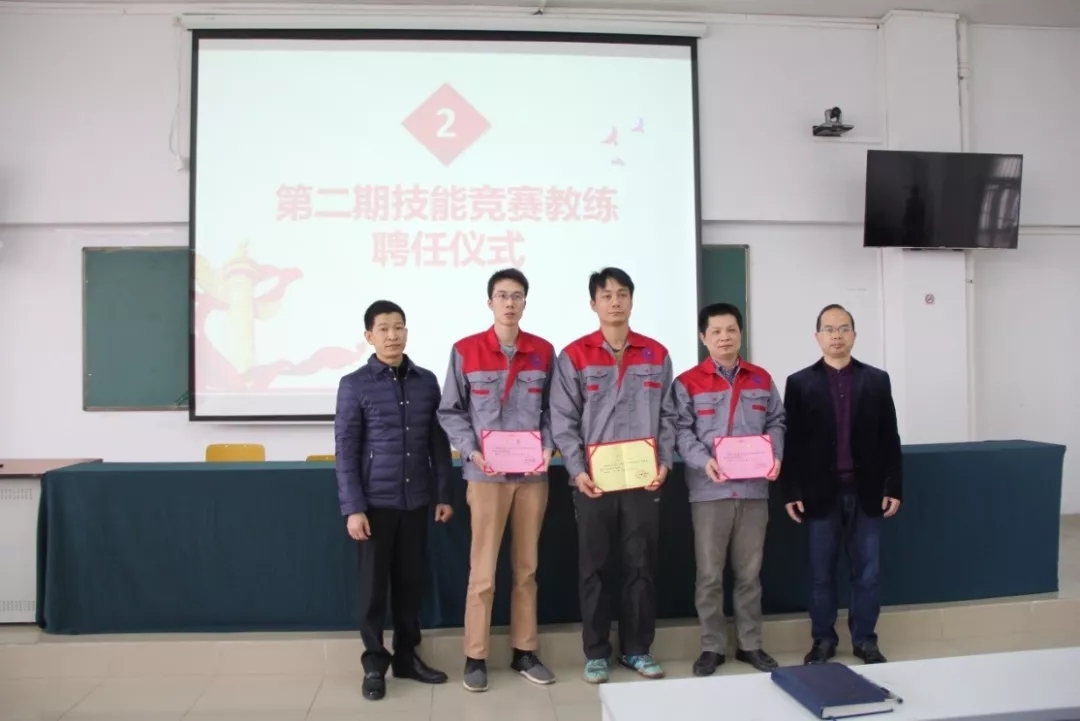 2019年1月18日上午,学院在潮连校区中心会议室举行第二期技能竞赛项目主教练、教练授聘仪式。在全体教职员工见证下,学院王戟书记向吴恩来等14名同志颁发技能竞赛项目主教练聘书,雷占庭副院长向梁仕腾等22名同志颁发技能竞赛项目教练聘书。
