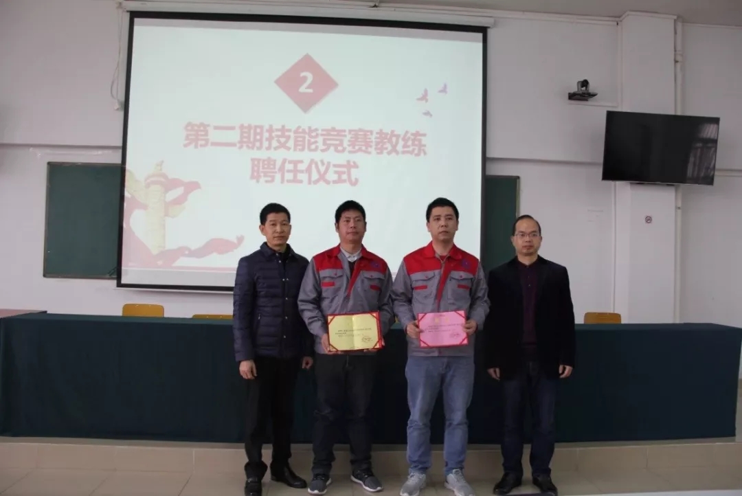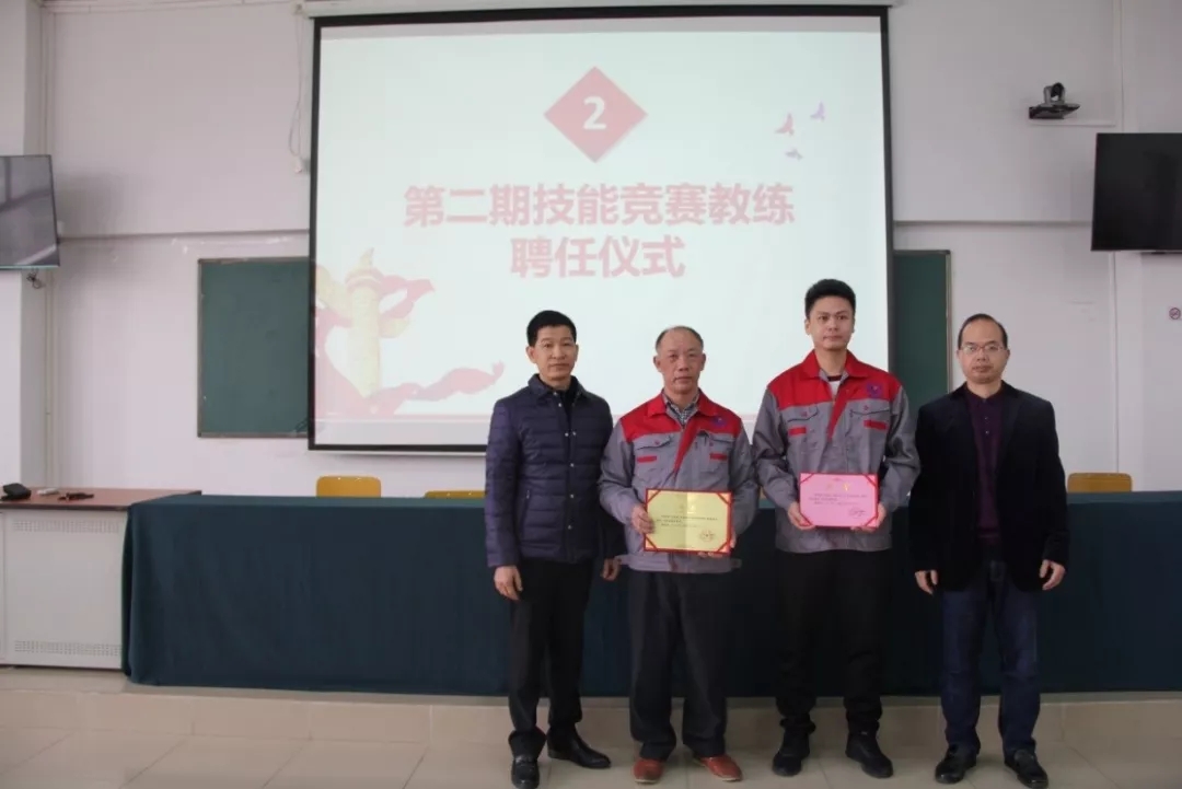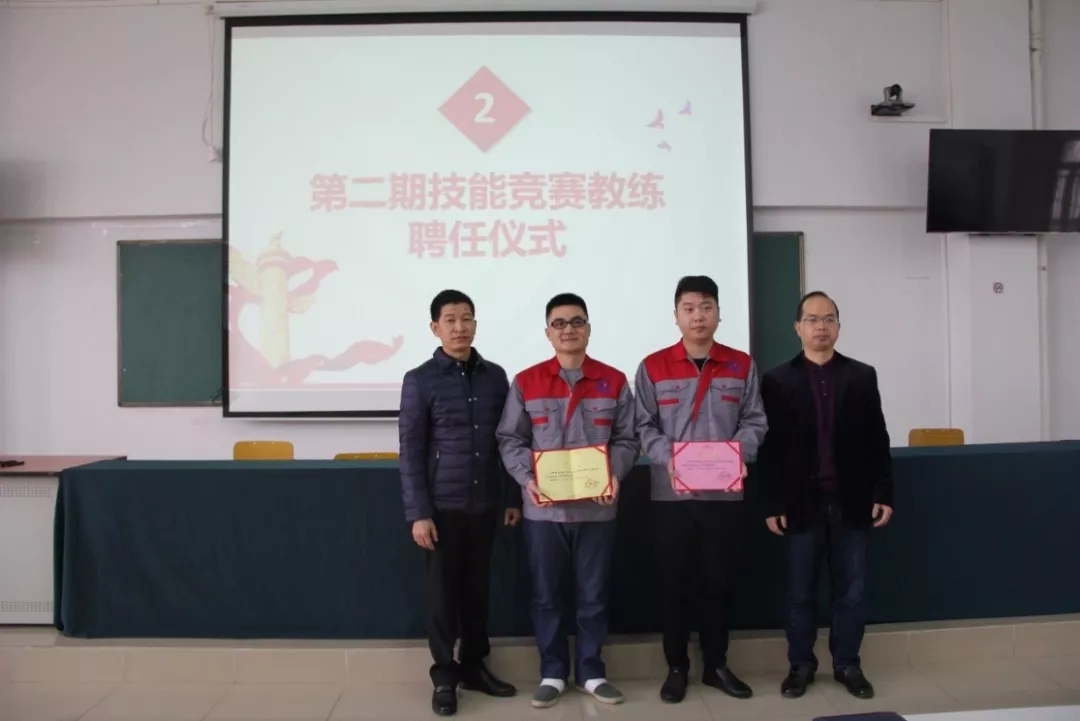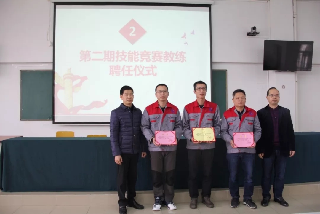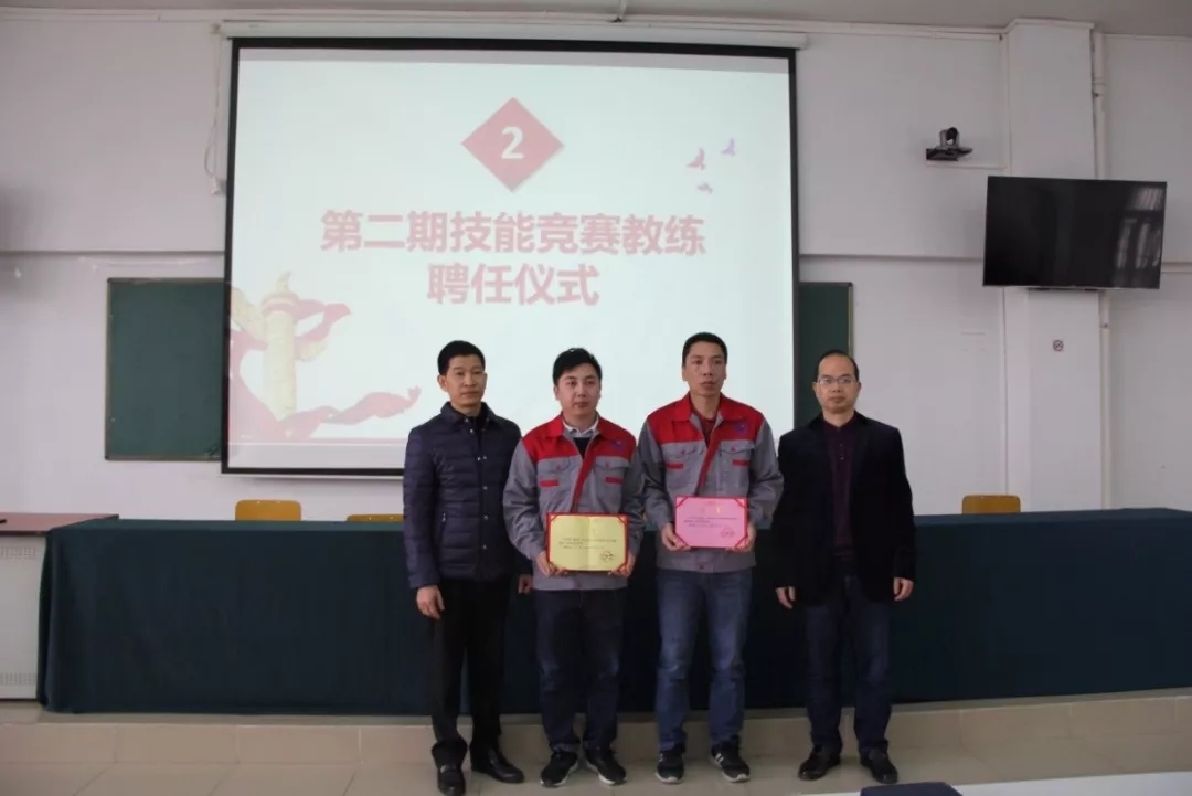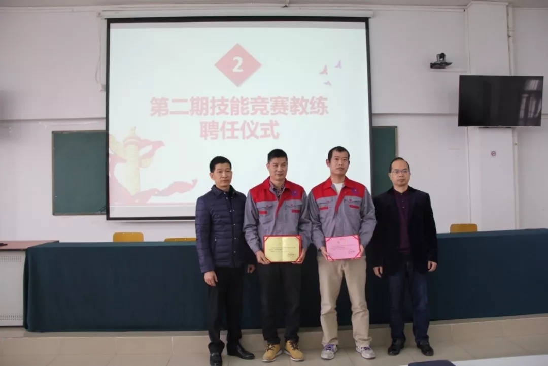 2019年1月18日上午,学院在潮连校区中心会议室举行第二期技能竞赛项目主教练、教练授聘仪式。在全体教职员工见证下,学院王戟书记向吴恩来等14名同志颁发技能竞赛项目主教练聘书,雷占庭副院长向梁仕腾等22名同志颁发技能竞赛项目教练聘书。